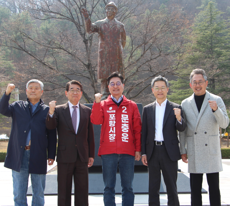 고(故) 박태준 포스코 명예회장의 사위인 윤영각 파빌리온인베스트먼트 회장이 26일 문충운 국민의힘 포항시장 예비후보 선거사무소를 방문해 격려했다.윤 회장은 이날 문 예비후보와 함께 포스텍에 위치한 박태준 명예회장 동상을 찾아 참배하며 고인의 뜻을 기렸다. 당초 참석 예정이던 장녀 박진아 씨는 건강상의 이유로 불참한 것으로 전해졌다.윤 회장은 포항 경제 구조와 관련해 “현재 포스코 의존도가 높은 상황에서 새로운 경제 체질을 만드는 것이 반드시 필요하다”며 “포항에 새로운 산업 기반이 자리 잡을 수 있도록 역할을 해달라”고 당부했다.이에 대해 문 예비후보는 박태준 명예회장의 정신 계승과 함께 지역 산업 구조 전환 의지를 밝혔다. 그는 “포스코와 포스텍 설립은 포항 미래를 위한 씨앗이었다”며 “그 뜻을 이어받는 것이 지금 세대의 책임”이라고 말했다.특히 포스텍의 연구 역량을 기반으로 한 신산업 육성 계획도 제시했다. 문 예비후보는 “애플 개발자 아카데미와 연구개발 지원센터 유치 경험을 바탕으로 이차전지, 수소, 바이오 등 미래 산업과 데이터센터 유치를 연계하겠다”고 강조했다.이어 “포항 최초의 이공계 출신 혁신형 시장으로서 도시의 100년 미래 먹거리를 책임지겠다”고 덧붙였다.