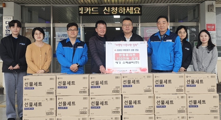포항시 남구 대송면에서 기업의 따뜻한 나눔이 이어졌다.대송면 행정복지센터는 30일 애경스페셜티㈜가 센터를 방문해 약 150만 원 상당의 생필품 세트를 기탁했다고 밝혔다.이날 전달된 물품은 지역 내 복지사각지대에 놓인 저소득 취약계층에 지원될 예정으로, 생활필수품 마련에 어려움을 겪는 가구의 부담을 덜어줄 것으로 기대된다.애경스페셜티 강병욱 공장장은 “작은 나눔이지만 도움이 필요한 이웃들에게 보탬이 되길 바란다”며 “앞으로도 지속적인 사회공헌 활동을 이어가겠다”고 말했다.황명석 대송면장은 “지역사회를 위한 따뜻한 나눔에 감사드린다”며 “기탁된 물품을 꼭 필요한 가구에 전달하겠다”고 밝혔다.