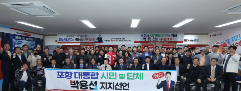 포항시장 선거를 앞두고 박용선 예비후보 지지자들이 보수 진영 통합과 지역 발전을 강조하며 공개 지지에 나섰다.‘박용선 포항시장 예비후보 지지선언 참여자 일동’은 30일 성명서를 발표하고 “분열을 넘어 포항 대통합으로 나아가야 한다”며 박 예비후보에 대한 지지를 선언했다.이날 성명 발표에는 지역 시민단체 44곳과 관계자 등 100여 명이 참여한 것으로 알려졌다.지지자들은 “포항은 철강 산업 중심 구조의 한계를 넘어 미래 산업으로 전환해야 하는 중요한 시점에 있다”며 “보수 진영의 통합과 지역 경제 재건을 이끌 적임자로 박용선 후보를 지지한다”고 밝혔다.특히 최근 공천 컷오프 이후 지역 내 갈등이 이어지는 상황을 언급하며 통합 필요성을 강조했다. 이들은 “선거는 경쟁이지만 끝난 뒤에는 협력과 통합으로 이어져야 한다”며 “지금은 분열이 아니라 힘을 모아 포항 경제를 살려야 할 때”라고 주장했다.지지자들은 박 예비후보의 강점으로 ▲포항 출신 현장형 인물 ▲경북도의회 3선 등 12년 의정 경험 ▲민생과 미래를 아우르는 정책 역량 등을 꼽았다.또 “포스코 현장에서 16년간 근무한 경험과 지역에서 쌓은 정치 경력을 바탕으로 실무 능력을 검증받은 인물”이라며 “탁상공론이 아닌 현장 중심 행정을 펼칠 수 있는 후보”라고 평가했다.정책 측면에서는 그래핀 특화단지 조성 등 미래 산업 전략과 함께 ▲배달 수수료 없는 지역 플랫폼 구축 ▲영세상인 비용 지원 ▲포항교육재단 설립 등 민생 공약을 주요 비전으로 제시했다.지지자들은 “이번 선거는 단순한 인물 경쟁이 아니라 포항의 미래를 결정하는 중요한 선택”이라며 “정치적 이해를 넘어 지역 통합과 상생을 이끌 후보에게 힘을 모아야 한다”고 강조했다.