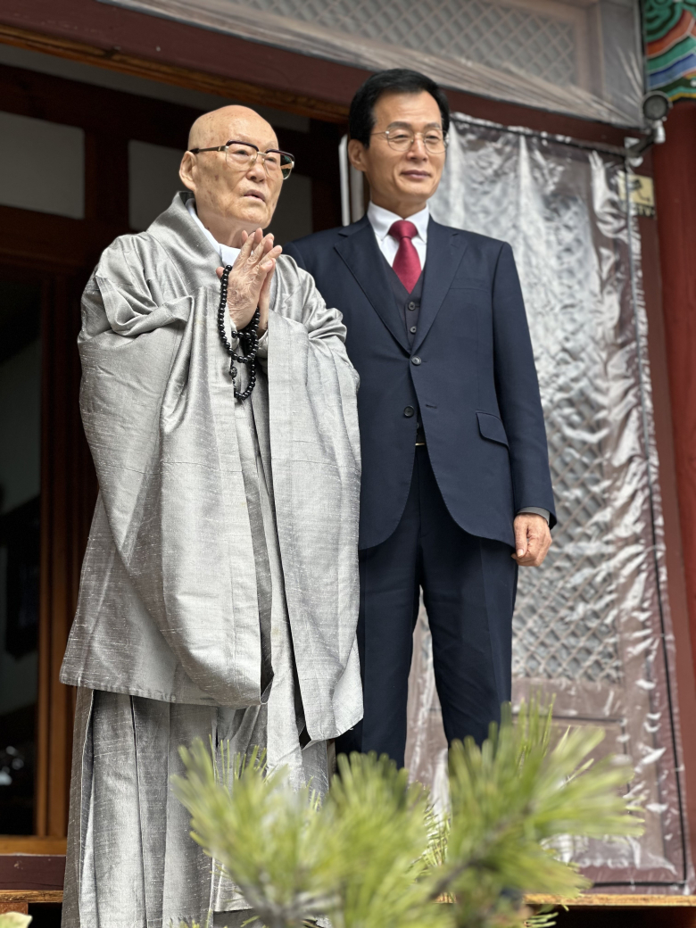 임명배 구미시장 예비후보가 지난 30일 소백산 성불사를 찾아 전 대한불교조계종 총무원장인 의현 스님을 예방했다.