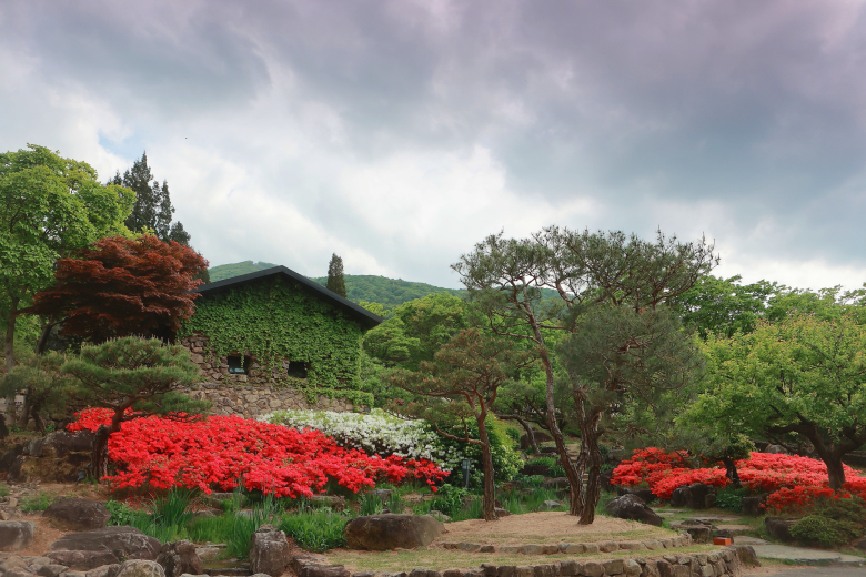 경북문화관광공사(사장 김남일)는 매월 소개하는 ‘사진으로 만나는 경북 여행’ 시리즈의 4월 추천 장소로 칠곡 가산수피아를 선정했다. 칠곡군 가산면에 위치한 ‘가산수피아’는 국내 최대 규모의 민간 정원으로 화사한 꽃길과 더불어 거대한 공룡 조형물, 알파카와의 교감, 숲속 캠핑까지 한곳에서 즐길 수 있다. 가산수피아의 4월은 수목원 전체가 거대한 꽃밭으로 변신한다. 벚꽃이 눈처럼 흩날리는 산책로를 지나면 튤립과 조팝나무 등 다채로운 봄꽃들이 방문객을 반긴다. 가장 먼저 만나는 산책로는 가산수피아의 시그니처인 돌담길로 방문객들에게 가장 인기 있는 구간이다. 돌담길을 따라 올라가면 수백 년의 세월을 간직한 고목들이 예술적인 자태를 뽐내는 분재원이 나타난다.