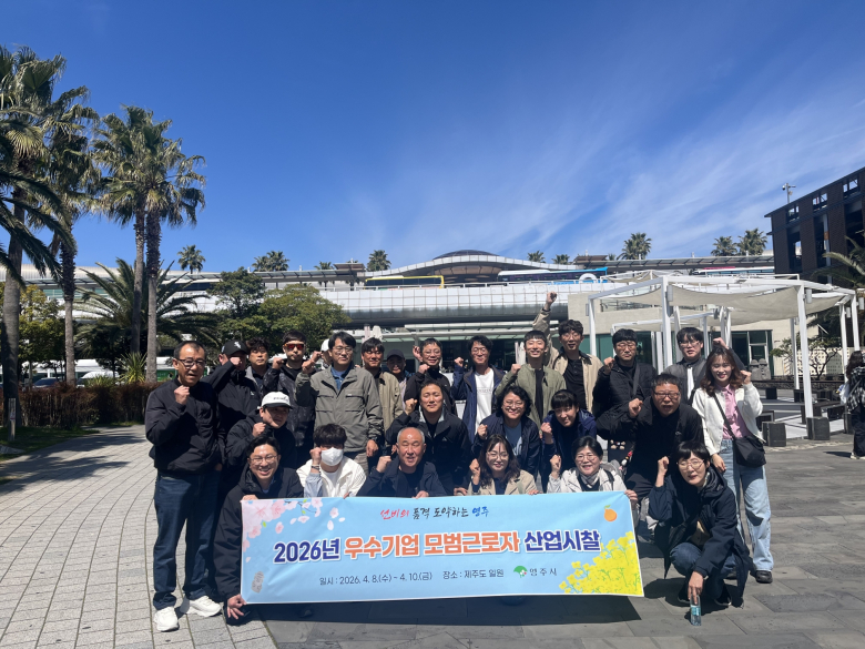 영주시는 8일부터 10일까지 2박 3일간 제주도 일원에서 ‘2026년 우수기업 모범근로자 산업시찰’을 실시한다.이번 산업시찰은 산업현장에서 성실히 근무해 온 근로자들을 격려하고 역량 강화와 노사 화합을 도모하기 위해 마련됐으며, 관내 중소기업에 근무하는 모범근로자 25명이 참여한다.주요 일정으로는 제주특별자치도개발공사 삼다수 공장과 제주해녀박물관 등 산업·문화시설 견학이 포함돼 있으며, 산업시찰 효과를 극대화하기 위한 역량 강화 교육도 함께 진행될 예정이다.참여 근로자 김모 씨는 “평소 쉽게 접하기 어려운 현장을 직접 볼 수 있어 의미 있는 시간인 것 같다”며 “이번 기회를 통해 잠시나마 재충전하고, 앞으로 더 열심히 일할 수 있는 힘을 얻고 싶다”고 말했다.시는 이번 산업시찰을 통해 근로자 간 소통과 화합을 증진하고, 나아가 상생의 노사 문화를 확산하는 계기가 될 것으로 기대하고 있다.박미선 기업지원실장은 “그동안 산업현장에서 묵묵히 최선을 다해 온 근로자 여러분께 깊이 감사드린다”며, “이번 산업시찰이 근로 의욕을 높이고 생산성 향상에도 도움이 되는 뜻깊은 시간이 되기를 바란다”고 말했다.