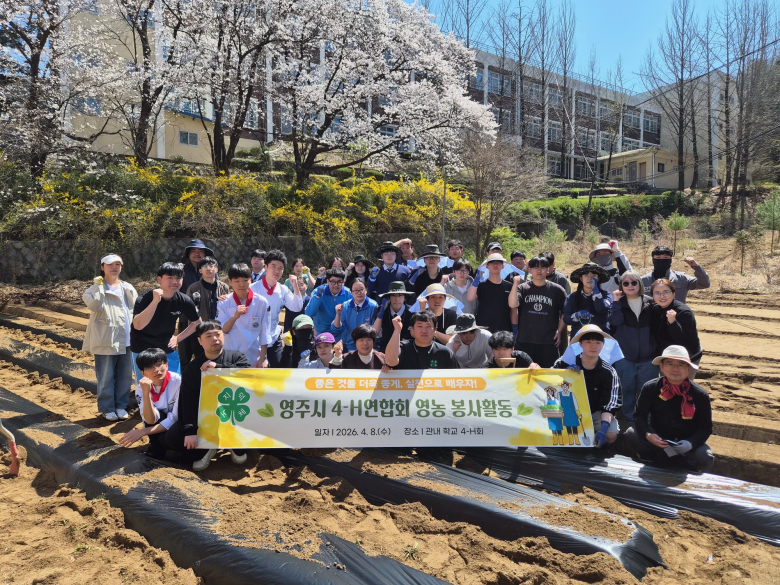 영주시4-H연합회(회장 황상호)가 영농철을 맞아 학생들과 함께하는 영농 봉사활동을 펼쳤다.연합회는 8일 동산여중, 한국미래산업고, 국제조리고 등 관내 3개 학교를 찾아 학교 텃밭 정비를 지원했다.이날 활동에는 청년4-H회원 30여 명이 참여해 경운과 정지, 비닐 멀칭 작업 등 농작업을 도우며 학생들과 함께 구슬땀을 흘렸다.현장에서 학생들은 텃밭을 직접 가꾸며 농업의 중요성을 체험하고 자연과 교감하는 시간을 가졌다. 이를 통해 농업에 대한 이해를 높이고 농촌에 대한 관심을 넓히는 계기가 됐다.활동에 참여한 한 회원은 “학생들과 함께 텃밭을 가꾸며 농업의 의미를 다시 생각해볼 수 있는 시간이었다”고 말했다.영주시4-H연합회는 지·덕·노·체 이념을 바탕으로 양로원과 학교 등을 찾아 지속적으로 봉사활동을 이어오고 있다. 청년과 학생이 함께 참여하는 활동을 통해 농업의 가치를 공유하고 지역사회와의 연계를 강화하고 있다.황상호 회장은 “청년·학생 4-H회원들과 함께 의미있는 봉사활동에 동참하게 되어 보람을 느낀다”며 “앞으로도 봉사활동과 다양한 활동을 통해 청년농업인의 책임과 역할을 다하겠다”고 전했다.정희수 농업기술센터 소장은 “이번 봉사활동은 농촌과 교육 현장이 함께한 뜻깊은 시간이었다”며 “앞으로도 4-H 활동을 통해 지역 농업과 청소년 교육 활성화를 위해 지속적으로 지원하겠다”고 밝혔다.