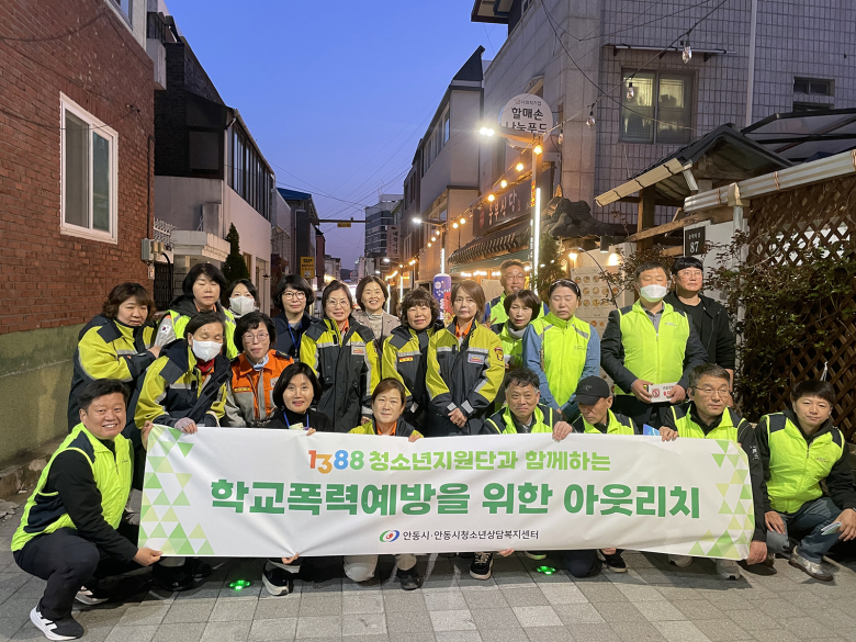 안동시청소년상담복지센터는 지난 7일 안동 웅부공원 일원에서 학교폭력 예방을 위한 '아웃리치'(Outreach) 활동을 성공적으로 마쳤다. 이번 활동은 공원 주변의 유동 청소년과 시민들을 직접 찾아가 학교폭력의 위험성을 알리고 건강한 또래 문화를 조성하기 위한 지역사회의 동참을 이끌어내고자 기획됐다.현장 캠페인에는 위기 청소년 보호의 핵심적인 역할을 수행하는 ‘1388청소년지원단’ 단원 20여 명이 함께해 의미를 더했다. 아웃리치란 도움이나 정보가 필요한 대상에게 먼저 다가가 서비스를 제공하는 적극적인 홍보 행위로 이날 단원들은 시민들에게 학교폭력 예방 홍보물을 배부하며 청소년 안전망 구축의 중요성을 전파했다.활동의 주역인 1388청소년지원단은 지난 2014년 위기 청소년을 조기에 발견하고 지원하기 위해 구성된 민간 자발적 참여 조직이다. 현재 발견·구조, 의료·법률, 복지, 상담·멘토 등 4개 분과에서 20여 명의 기관·단체 및 개인이 소속돼 지역 청소년들을 위한 든든한 울타리 역할을 활발히 수행하고 있다.남명희 센터장은 “지역사회와 손잡고 진행하는 지속적인 예방 활동은 우리 청소년들이 안전하고 건강하게 성장할 수 있는 소중한 밑거름”이라며 “앞으로도 학교폭력 예방은 물론 사각지대에 놓인 위기 청소년 지원을 위해 다양한 맞춤형 활동을 이어가겠다”고 전했다.한편 청소년상담복지센터는 청소년 전문 상담기관으로 9세에서 24세까지의 관내 청소년을 대상으로 ▲청소년전화 1388 ▲개인상담 및 집단상담 ▲심리검사 ▲청소년동반자사업 ▲부모교육 ▲1388청소년지원단 등을 운영하고 있다.