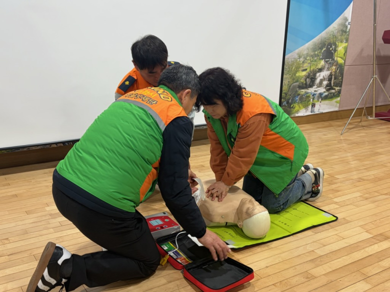 포항시 북구 죽도동 자율방재단이 응급상황 대응 역량 강화를 위한 심폐소생술 교육을 진행했다.죽도동 자율방재단(단장 오수근)은 9일 죽도동 행정복지센터 대회의실에서 단원들을 대상으로 심폐소생술(CPR) 교육을 실시했다고 밝혔다.최근 응급처치에 대한 사회적 관심이 높아지는 가운데 마련된 이번 교육에는 자율방재단원 15명이 참여했으며, 죽도동 의용소방대원 2명이 강사로 나서 이론과 실습을 병행했다.교육은 심폐소생술과 자동심장충격기(AED) 사용법을 중심으로 실제 상황을 가정한 실습 위주로 진행됐으며, 단원 전원이 참여해 현장 대응 능력을 높였다.오수근 단장은 “이번 교육을 통해 단원들이 응급상황에서 생명을 살릴 수 있는 실질적인 대응 능력을 익히는 계기가 됐다”고 말했다.교육 이후에는 여름철 재난에 대비해 양수기 등 재난대응 장비 점검도 함께 실시하며 현장 대응 체계를 재정비했다.정혜숙 죽도동장은 “자율방재단은 취약지역 예찰과 순찰을 통해 지역 안전을 지키는 중요한 역할을 하고 있다”며 “앞으로도 민관 협력을 통해 촘촘한 지역 안전망을 구축해 나가겠다”고 밝혔다.
