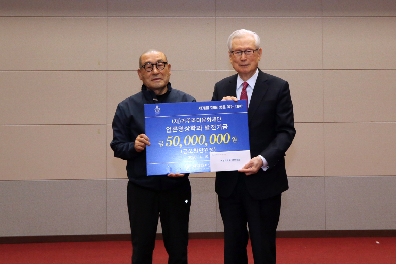 귀뚜라미문화재단(이하 재단)이 지난 10일 계명대 성서캠퍼스 바우어신관 덕영실에서 대학 발전기금 5000만원을 전달했다.이날 전달식에는 최진민 회장을 비롯한 귀뚜라미그룹 관계자들과 신일희 총장 등 대학 주요 관계자들이 참석했다.이번 기부금은 계명대 언론영상학과 발전기금으로 활용돼 급변하는 미디어 환경에 대응할 수 있는 실무 중심 교육 인프라 구축과 지역 인재 양성에 쓰일 예정이다.최진민 재단 회장은 “기업의 이익은 사회로 환원돼야 하며 교육 기회는 누구에게나 평등하게 보장돼야 한다”며 “학생들이 경제적 부담 없이 학업에 전념해 국가 경쟁력을 이끄는 인재로 성장하길 바란다”고 말했다.이번 기탁으로 재단의 계명대 발전기금 누적액은 총 2억원에 이르렀다. 재단은 2024년부터 모빌리티캠퍼스 조성과 언론영상학과 발전기금 지원을 시작으로 매년 5천만원씩 기부를 이어오고 있다.신일희 계명대 총장은 “귀뚜라미문화재단은 장학사업을 통해 많은 학생을 지원해온 기관”이라며 “이번 발전기금도 교육 발전을 위해 소중히 활용하겠다”고 밝혔다.한편 귀뚜라미문화재단은 1985년 설립 이후 약 7만명의 장학생을 지원했으며 귀뚜라미그룹은 재단을 통해 총 610억원 규모의 사회 환원을 이어오고 있다.