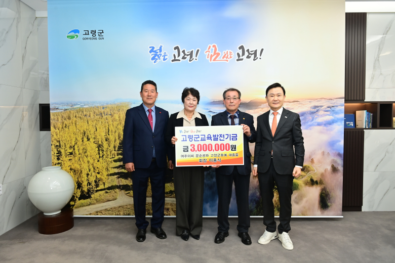 여주이씨 문순공파 고양군후예 대종중 이홍식 회장이 지난 9일 고령군청을 방문해 지역의 교육 발전과 인재 양성을 위해 사용해 달라며 교육발전기금 300만원을 기탁했다. 이날 기탁식에 참석한 이홍식 회장은 오는 5월 1일 고령향교 전교 임기 시작을 앞두고 지역 인재 육성에 깊은 관심을 표하며 교육발전기금을 전달하였으며 고령군 학생들을 위해 소중히 사용해달라 고 말했다. 사단법인 고령군교육발전위원회 성현덕 이사장은 이홍식 회장에게 "감사하다"며 "기탁금은 학생들의 쾌적한 학업환경 조성을 위해 소중히 사용하겠다"고 밝혔다. 군 관계자는 지역교육 활성화를 위해 선뜻 큰 금액을 기탁한 이홍식 회장에게 고마움을 표하고 "고령의 미래는 교육에 달려 있다"며 "전달해 주신 기탁금은 고령군의 미래를 책임질 인재육성의 밑거름으로 사용하겠다"고 말했다.