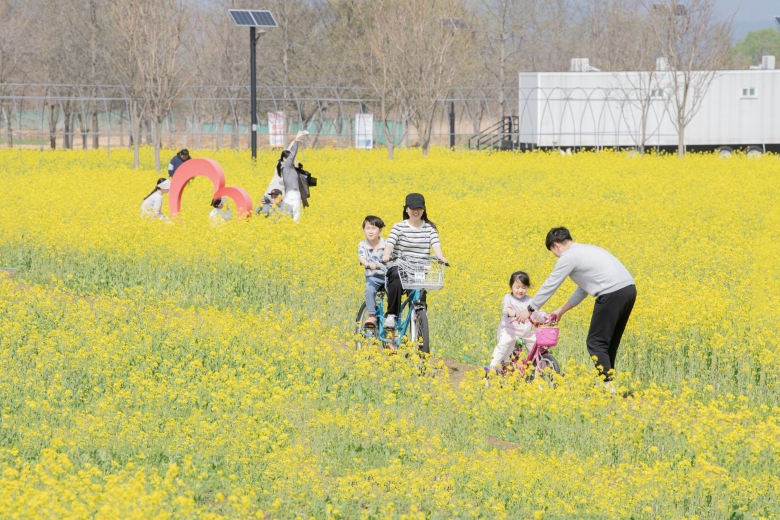 구미 낙동강체육공원이 황금빛 유채꽃 물결로 물들며 봄의 절정을 알리고 있다. 사진제공=구미시