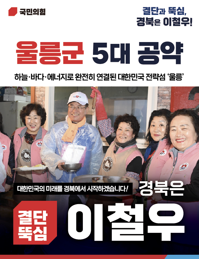 이철우 경북도지사 예비후보는  "울릉은 대한민국의 미래를 시험할 수 있는 가장 상징적인 공간이다"며 "사람이 돌아오고 자립하는 섬으로 반드시 완성하겠다"고 강조했다.