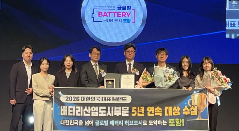 포항시가 ‘배터리산업도시’ 부문에서 5년 연속 대한민국 대표브랜드 대상을 수상하며 산업 경쟁력을 다시 한 번 입증했다.포항시는 14일 서울 신라호텔에서 열린 ‘2026 대한민국 대표브랜드 대상’ 시상식에서 배터리산업도시 부문 대상을 받았다고 밝혔다. 이 상은 동아닷컴, iMBC, 한경닷컴이 공동 주최하며 소비자 조사를 통해 분야별 브랜드 경쟁력을 평가하는 행사다.포항시는 전국 8개 후보 지자체 가운데 최초상기도, 인지도, 마케팅, 브랜드 선호도 등 전 항목에서 최고점을 기록했다. 특히 ‘가장 먼저 떠오르는 도시’를 의미하는 최초상기도 부문에서 경쟁 도시와 큰 격차를 보이며 ‘배터리 하면 포항’이라는 이미지를 굳혔다는 평가다.시는 2017년 에코프로 투자 유치를 시작으로 2019년 배터리 리사이클링 규제자유특구, 2021년 전기차 배터리 자원순환 클러스터, 2023년 국가첨단전략산업 특화단지, 2024년 기회발전특구 지정 등 주요 국책사업을 잇따라 확보하며 산업 기반을 다져왔다.특히 특화단지 지정 이후 산단 입주 절차 간소화와 전력·용수 인프라 확충 등 지원이 이어지면서 기업들의 생산 여건이 크게 개선됐다. 이 같은 환경 속에서 포스코퓨처엠 등 선도 기업이 자리 잡으며 영일만과 블루밸리 국가산단 분양률도 90% 이상을 기록했다.포항시는 전기차 중심의 배터리 산업을 넘어 전기추진선박 등 해양 분야로 산업 확장도 추진 중이다. ‘K-차세대 전기추진선박 글로벌 혁신특구’ 조성을 통해 산업 포트폴리오를 다변화하고 연관 산업 간 시너지를 강화한다는 구상이다.이상엽 일자리경제국장은 “5년 연속 대상 수상은 포항이 대한민국 배터리 산업을 이끄는 대표 도시임을 다시 확인한 결과”라며 “글로벌 배터리 산업 거점으로 자리매김할 수 있도록 경쟁력을 지속 강화하겠다”고 말했다.