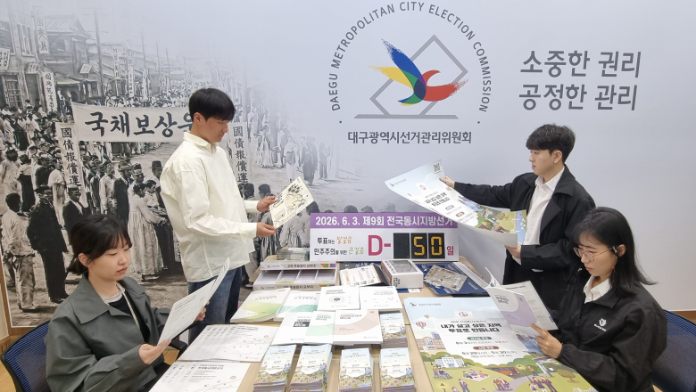 대구시선거관리위원회는 14일 전국동시지방선거를 50일 앞두고 회의실에서 지방선거 선거절차 및 투표참여 홍보를 위한 포스터, 리플릿, 피켓 및 투표절차 안내도 등 준비상황을 확인·점검했다.