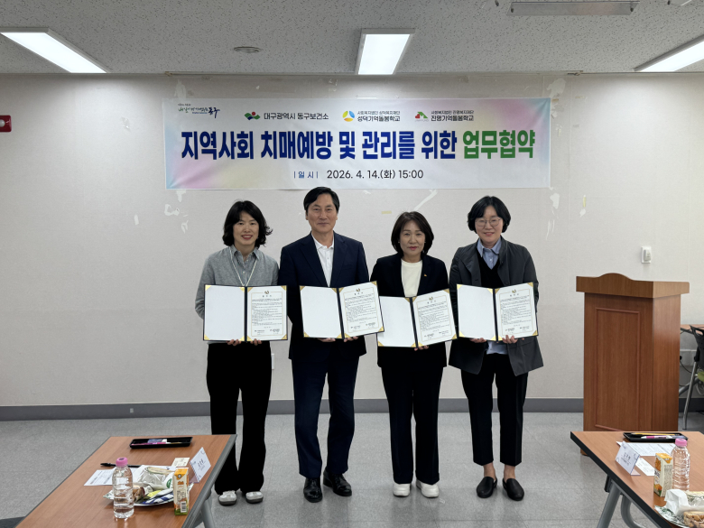 대구 동구보건소가 지역 치매 돌봄기관과 협력해 촘촘한 치매 안전망 구축에 나섰다.동구보건소는 지난 14일 성덕기억돌봄학교와 진명기억돌봄학교와 치매 예방 및 통합 관리 체계 강화를 위한 업무협약을 체결했다.이번 협약은 보건복지부 ‘제5차 치매관리종합계획(2026~2030)’에 맞춰 지역사회 기반 돌봄을 강화하고 치매 환자가 익숙한 생활환경에서 안정적으로 생활할 수 있도록 지원하기 위해 추진됐다.협약에 따라 각 기관은 치매 고위험군과 경도인지장애 대상자에 대한 조기 검진 연계를 비롯해 인지 강화 프로그램 운영, 맞춤형 사례관리 정보 공유, 치매 친화적 환경 조성을 위한 공동 캠페인 등에 협력하기로 했다.특히 공공과 민간이 연계된 협력 체계를 통해 치매 관리 사각지대를 줄이고 예방부터 돌봄까지 이어지는 통합 서비스 제공에 초점을 맞출 계획이다.김정용 동구보건소장은 “지역 내 치매 고위험군과 경증 환자들이 익숙한 환경에서 건강한 노후를 보낼 수 있도록 지원을 강화하겠다”며 “촘촘한 치매 안전망 구축에 최선을 다하겠다”고 말했다.
