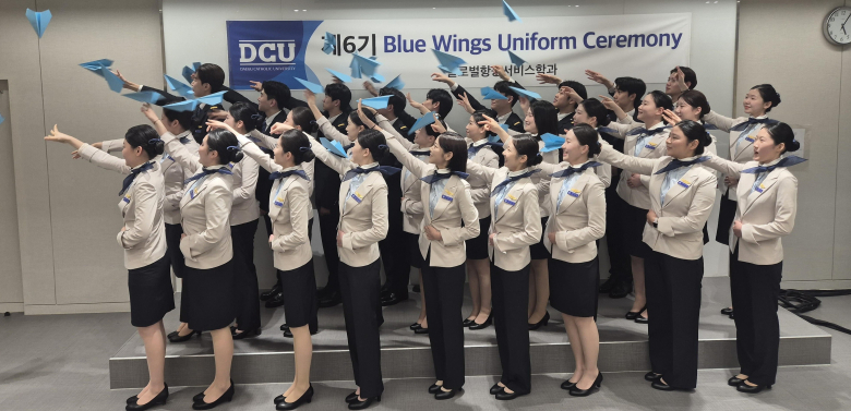 대구가톨릭대 글로벌항공서비스학과가 ‘윙수여식’을 열고 예비 승무원들의 첫걸음을 기념했다.대구가톨릭대는 지난 6일 ‘제6기 윙수여식을 개최하고 1학년 재학생 29명에게 항공기 날개를 상징하는 윙 배지를 수여했다.이번 행사는 학생들이 항공서비스 전문 인재로서의 책임감과 소속감을 다지는 자리로 마련됐다. 윙 배지는 항공 승무원의 상징으로 학생들은 이를 통해 향후 진로에 대한 의지를 다지고 전문 직업인으로서의 첫걸음을 내딛게 된다.글로벌항공서비스학과장 신정민 교수는 “윙수여식을 계기로 새로운 마음가짐으로 목표인 승무원을 향해 함께 노력하길 바란다”며 “이 행사가 학생들이 꿈을 향해 나아가는 전환점이 되기를 기대한다”고 말했다.
