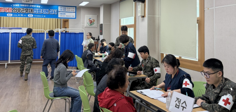 해병대 제1사단 의무대대가 농촌 지역 주민들을 위한 찾아가는 의료지원 활동을 펼쳤다.해병대 제1사단 의무대대는 15일 기계면 문화의집에서 지역 어르신과 주민을 대상으로 대민 의료지원을 실시했다고 밝혔다.이번 의료지원은 해병대와 기계면 간 자매결연을 바탕으로 병원 접근성이 낮은 주민들의 건강을 살피고 민·군 유대 강화를 위해 마련됐다.현장에는 내과와 정형외과, 치과 등 3개 진료 분야 군의관과 간호 인력이 참여해 맞춤형 진료를 제공했다. 거동이 불편한 어르신들도 가까운 곳에서 의료 상담과 치료를 받을 수 있어 호응을 얻었다.해병대 관계자는 “자매결연 지역 주민들의 건강 증진에 보탬이 될 수 있어 뜻깊다”며 “앞으로도 지역사회와 상생하며 국민의 생명과 안전을 지키는 역할을 이어가겠다”고 말했다.최정훈 기계면장은 “바쁜 일정에도 주민들을 위해 의료지원을 펼쳐준 해병대 장병들에게 감사드린다”며 “앞으로도 협력을 통해 더욱 살기 좋은 지역을 만들어 나가겠다”고 밝혔다.