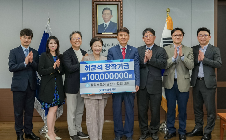 손지영 삼성스토어 경산 대표이사가 지난 15일 영남대학교에 발전기금 1억 원을 기탁했다. 지난해 6월 발전기금 1000만 원을 기탁한데 이어 1년이 채 지나기 전에 다시 대학을 찾아 1억 원을 쾌척했다. 기탁한 발전기금은 손 대표이사의 어머니 고 허윤석 여사의 이름을 딴 ‘허윤석 장학기금’으로 명명하고 식품경제외식학과와 행정학과 학생들을 위한 장학금으로 활용할 예정이다. 손지영 대표이사는 "기부가 어느 순간부터 제 삶의 일부가 됐다. 제가 이 자리까지 올 수 있었던 가장 큰 힘은 어머니의 가르침에서 비롯됐다"며 "어머니께서는 ‘가진 것이 많아서 나누는 것이 아니라 주어진 환경 속에서 더 많이 베풀고 나누며 살아갈 때 삶이 더 행복해진다’는 것을 말이 아닌 삶으로 보여주셨다”고 전했다.