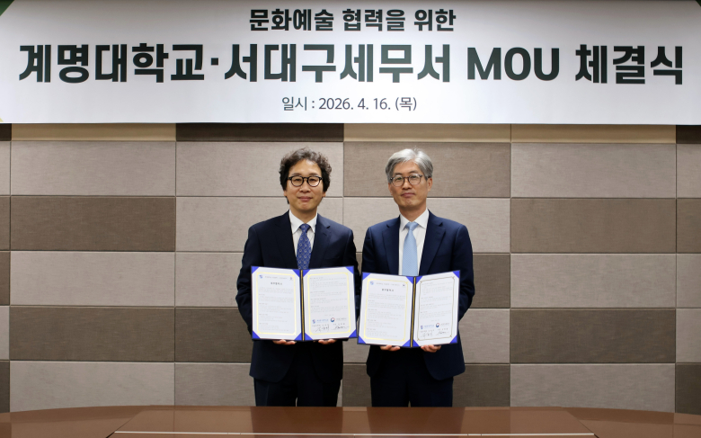 계명대학교 미술대학과 서대구세무서가 문화예술 전시 협력을 위한 업무협약을 체결했다.양 기관은 16일 서대구세무서에서 협약식을 갖고 세무행정 공간을 지역 주민이 문화예술을 향유할 수 있는 열린 공간으로 확대하고 지역 예술 인재의 창작활동을 지원하기로 했다.협약에 따라 계명대 미술대학 교수와 재학생 작품을 세무서에 장기 전시하고, 전시 공간 조성과 문화예술 환경 개선 등 다양한 협력사업을 추진할 계획이다. 이번 전시는 교수 작품 11점과 재학생 작품 14점 등 총 25점으로 구성돼 6개월간 진행된다.이를 통해 세무서 직원과 민원인에게 일상 속 문화 향유 기회를 제공하고, 공공기관과 지역사회 간 소통을 확대하는 데 기여할 것으로 기대된다.특히 이번 협약은 공공기관과 지역 대학이 협력해 생활 공간 속 문화예술 접점을 넓힌 사례로, 납세자가 보다 친근하게 세무서를 이용할 수 있는 계기를 마련했다는 점에서 의미를 더한다.임종철 서대구세무서장은 “이번 협약을 통해 세무서가 단순한 행정기관을 넘어 지역사회와 소통하는 문화공간으로 자리매김하길 바란다”며 “앞으로도 국민과 함께하는 열린 세정을 실현해 나가겠다”고 말했다.