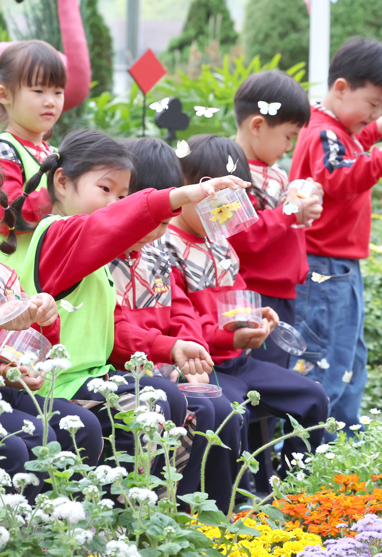 함평나비대축제 개막을 나흘 앞둔 20일 전남 함평엑스포공원에서 열린 축제 성공 기원을 위한 나비날리기 행사에서 어린이집 아이들이 나비를 날리고 있다. 연합