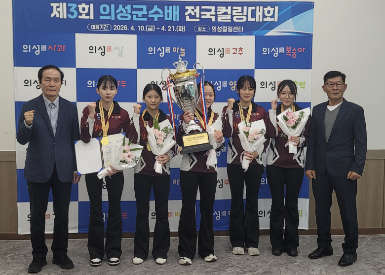 의성여자중학교 컬링부 A 팀이 지난 11일부터 15일까지 의성컬링장에서 열린 ‘제3회 의성군수배 전국컬링대회’에서 15세 이하 여중부 정상에 올랐다. 이번 대회에는 총 6개 팀이 참가해 예선 풀리그 방식으로 경기가 진행됐으며 의성여중 A 팀은 예선에서 4승 1패를 기록하여 1위로 결승에 진출했다. 이어진 결승전에서는 민락중학교를 상대로 6대4 승리를 거두며 최종 우승을 했다. 우승을 차지한 의성여중 A 팀은 뛰어난 팀워크와 집중력을 바탕으로 안정적인 경기 운영을 선보였다. 특히 이번 성과를 통해 해당 선수들은 2026년 청소년 국가대표로 선발되는 영예를 안으며 향후 대한민국 컬링의 미래를 이끌 유망주로서의 가능성을 입증했다. 한편 이번 대회에서는 남중부 의성중학교와 남고부 의성고등학교도 나란히 우승을 차지하며 의성 지역 컬링의 저력을 전국에 다시 한번 알렸다. 최재관 교장은 “학생 선수들의 꾸준한 노력과 열정이 만들어낸 값진 결과”라며 “앞으로도 지역사회의 지속적인 관심과 지원 속에서 더욱 성장할 수 있기를 기대한다”고 밝혔다. 아울러 의성군청과 의성군 인재육성재단의 지속적인 지원에 깊은 감사의 뜻을 전하며 지역 기반 학생체육 발전의 모범 사례로 주목받고 있다.