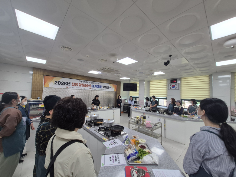 상주시농업기술센터는 지난 21일 지역의 전통 향토음식 계승과 우리 농산물 활용을 확대하기 위한 전통향토음식 아카데미(향토음식 과정) 개강식을 농업기술센터 전통식문화체험교육관에서 가졌다. 이번 교육은 지역에서 나는 식자재인 한우, 오이 등을 활용한 향토음식 조리법을 배우고, 지역 식문화를 계승·발전시키기 위해 마련됐다. 교육은 21일부터 5월 19일까지 매주 화요일마다 총 5회 과정으로 운영되며 소고기 아롱사태 장조림, 감로빈, 더덕 곶감 샐러드, 오이감정 등 우리 지역의 주요 농축산물을 활용한 실습 교육으로 구성해 교육생들의 실질적인 활용 능력을 높이는 데 중점을 두고 있다. 서정현 미래농업과장은 “이번 교육이 지역 농산물의 활용도를 높이고 이를 통해 우리 농산물 소비 확대에도 도움이 되길 기대한다”며 “앞으로도 전통향토음식의 소중한 가치를 이어가기 위한 다양한 교육 프로그램을 지속적으로 운영하겠다”고 했다.