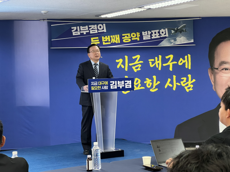 더불어민주당 김부겸 대구시장 예비후보는 23일 대구경북 통합신공항 사업의 즉시 착수 및 오는 2028년 대구경북 행정통합 등을 주요 내용으로 한 2차 공약을 발표했다.이날 김 예비후보는 선거사무소에서 "총사업비 15조원이 투입되는 대구경북신공항 건설의 조기 추진을 위해 이미 민주당과 협의를 마쳤다"고 밝혔다.또 "공공자금관리기금 5000억원에 정부 특별지원 5000억원을 더해 총 1조원을 확보하고 설계부터 부지 매입, 인근 지역 주민 지원까지 이전 사업을 빠르게 추진하겠다"고 제시했다.특히 “신공항이 들어서는 군위는 경제자유구역 개발사업을 통해 공항과 연계한 외국인 투자 유치, 항공(MRO)산업, 첨단 물류산업 등으로 물류 중심이자 정주 여건을 갖춘 대구 경제의 새로운 축으로 만들겠다”며 “이곳을 지역 특화형 방위산업 클러스터로도 조성하겠다”고 공약했다.이어 “공항 이전 후적지 개발과 관련, 약 660만㎡ 공항 부지에 현 정부가 추진하는 규제 특구를 도입하고 첨단산업, 지식 서비스, 청년창업이 어우러진 '미래산업 디지털전환 밸리'를 조성해 미래형 기업도시로 만들겠다”는 설명했다.김 예비후보는 이날 무산된 행정통합의 재추진 의사도 강력하게 피력했다.김 예비후보는 "행정통합을 통해 4년간 최대 20조원의 재정 혜택, 공공기관 이전 및 기업 유치를 통한 일자리 혜택, 지역인재 우선 채용과 같은 인재 혜택 등 대구가 누릴 수 있는 혜택은 다 누릴 수 있도록 하겠다"고 언급했다.아울러 “'TK공동 통합추진위원회' 출범을 통해 시·도민에게 행정통합에 대해 충분히 설명하고 주민투표를 거치겠다”면서 “통합특별법 국회 통과를 추진해 오는 2028년 총선에서 통합단체장을 선출하고 행정통합을 완성하겠다”고 강조했다.김부겸 예비후보는 "대구경북 행정통합, 통합신공항 건설이라는 대구 거대 비전 실현을 위해 중앙정부 설득, 국회 협업, 예산 확보와 같은 일은 국정 경험과 힘 있는 여당 일꾼만이 할 수 있는 일"이라고 말했다.