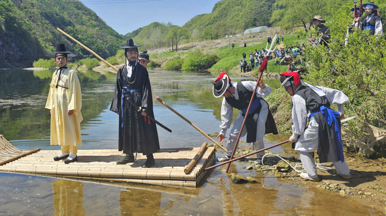 제59회 단종문화제 첫날인 24일 영월군 청령포에서 조선 제6대 임금이자 비운의 왕 단종이 노산군(魯山君)으로 강봉된 채 나룻배를 타고 청령포로 들어가는 569년 전 단종유배길 행사가 재현됐다. 연합