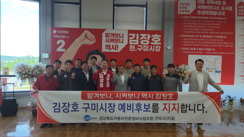 카포스 구미시지회가 “김장호 후보는 시민과 소상공인들의 현장의 목소리를 정책에 즉각 반영하는 소통의 달인으로 선출직 공직자의 기본자세를 가장 잘 갖춘 후보이다”라며 지지선언에 나섰다.24일 송정동에 위치한 김장호 구미시장 예비후보 열정시민캠프를 카포스 구미시지회 편청훈 지회장을 비롯해 임원진 등 10여 명이 방문해 이같이 밝혔다.이들은 “김 후보는 매년 명절 등에 구미시민을 위해 실시하는 자동차 무상점검 행사를 아낌없이 지원해 고향으로 떠나거나 구미로 오는 시민들의 자동차 안전 확보와 자동차 정비인들이 재능기부를 통해 지역사회에 봉사할 수 있는 기회를 열어줬다”고 밝혔다.이어 “탄소중립 정책과 친환경 자동차 등으로 인해 자동차 정비업계가 도태되고 있다”며 “자동차 정비업계가 시장에서 도태되는 일이 없도록 행정적으로 뒷받침 해 줄 것을 당부했다”고 말했다.