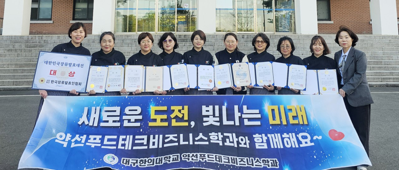 글로컬대학 대구한의대학교 K-MEDI융합산업대학원 푸드케어약선학과·약선푸드테크비즈니스학과가 ‘2026 대한민국장류발효대전’에서 대상인 농림축산식품부장관상을 포함해 다수의 상을 수상하며 전통 약선의 경쟁력을 다시 한번 입증했다.이번 대회는 지난 3월 22일 국회의사당 잔디광장에서 열렸으며 전국의 전통 발효식품 및 장류 관련 기관과 전문가들이 참여한 가운데 진행됐다.대구한의대는 대상인 농림축산식품부장관상(도화연)을 비롯해 서울특별시장상(이주화), 국회 농림축산식품해양수산위원장상(김기경·김금자·양태숙·최나경·황봉자), 서울특별시의회 의장상(김지아·김태하·여정현·이태진·최태보) 등을 수상하며 참가 기관 중 두드러진 성과를 거뒀다.수상작들은 18~19세기 고조리서인 ‘증보산림경제’, ‘규합총서’, ‘임원경제지’를 바탕으로 전통 기능성 발효장류와 궁중음식인 발효떡, 용떡, 어식해 등을 현대적으로 재현한 것이 특징이다. 전통 문헌에 근거한 정통성과 함께 현대적 감각을 결합한 점에서 높은 평가를 받았다.특히 이번 수상은 2024년 중소벤처기업부장관상, 2025년 해양수산부 및 농림축산식품부 장관상에 이어 3년 연속 장관상을 수상한 것으로 대구한의대가 추진해 온 K-약선 분야의 교육·연구 역량이 지속적인 성과로 이어지고 있음을 보여준다.푸드케어약선학과와 약선푸드테크비즈니스학과는 한방 약선 이론을 기반으로 메뉴 개발, 연구개발(R&D), 푸드비즈니스까지 아우르는 융복합 교육과정을 운영하며 K-약선 식품산업을 선도할 전문 인재 양성에 주력하고 있다.