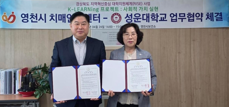 영천시치매안심센터는 지난 24일 성운대학교와 치매 예방 및 관리 강화를 위한 관·학 업무협약을 체결했다.이번 협약은 지역사회 내 치매 사각지대를 줄이고 조기검진과 예방 중심의 관리체계를 강화하기 위해 마련됐으며 관·학 협력을 통해 보다 촘촘한 치매 대응 기반을 구축하는 데 목적이 있다.양 기관은 ▲치매 조기검진 지원 ▲예방 프로그램 운영 ▲치매보듬마을 사업 ▲교육 및 홍보활동 등 다양한 분야에서 협력을 이어갈 계획이다. 아울러 치매극복선도대학 운영을 통해 전문 인력을 활용한 지역사회 연계 활동도 확대해 나가기로 했다.성운대학교 미래휴먼사회복지학부 학과장은 “지역사회 치매 예방 및 관리 역량 강화를 위해 자원을 연계하고 전문 인력을 활용한 다양한 협력 사업에 적극 참여하겠다”고 밝혔다.박선희 보건소장은 “이번 협약은 지역사회 중심 치매관리 기반을 한층 강화하는 계기가 될 것”이라며 “앞으로도 다양한 기관과의 협력을 통해 시민이 체감할 수 있는 치매 예방 환경을 만들어 나가겠다”고 말했다.