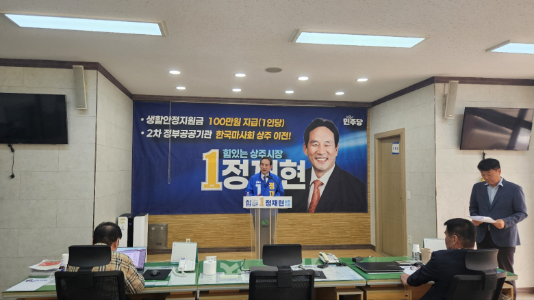 더불어민주당 상주시장 정재현 예비후보가 27일 오전11시 상주시청 브리핑센터에서 “상주의 새로운 미래를 열겠다는 비장한 각오로 이 자리에 섰다”며 기자회견을 가졌다.정재현 예비후보는 “6월 3일 상주의 운명을 결정할 중요한 선택의 날이 다가오고 있다. 5선 시의원과 시의장을 역임하면서 오직 상주 발전 하나만을 바라보고 시민의 뜻을 받들고 민심을 대변하는 길에서 단 한 번도 가볍게 임한 적 없다"며 "그러나 의회는 견제는 할 수 있어도 직접 바꾸는 힘에는 제약이 있어서 상주를 바꾸려면 시장이 되어 책임지고 실행하기 위해서”라고 했다.그러면서 “눈치보고 책임을 회비하는 공직사회가 아니라 소신껏 일하는 공무원이 보상받도록 할 것이며 불필요한 줄 세우기와 눈치 문화를 없애면서 시장 한 사람이 아니라 상주시청 전체가 함께 되는 도시, 그 힘으로 상주를 살려내겠다”고 호소했다.아울러 “집권여당인 더불어 민주당의 적극적인 협력을 통해 상주의 발전을 현실로 만들 수 있으며 정치는 편이 아니라 결과로 평가 받도록 하겠다”고 했다.특히 “이번 선거가 단순한 선거가 아니라 상주의 미래를 결정하는 역사적 선택인만큼, 상주의 심장을 다시 뛰게 만들겠다”며 지지를 호소했다. 정재현 예비후보는 4대 발전 핵심 공약으로 ▲상주~관기 45km 구간 4차선 확장 ▲경천섬과 경천대를 국가정원으로 조성해 대한민국 대표 관광도시 조성 ▲마사회 본부를 상주로 이전시켜 일자리와 지역경제 활성화 ▲시민 1인당 100만원 생활안정지원금을 상주화례로 지급 등을 내세웠다.상주시장 선거에는 더불어민주당 정재현 후보와 국민의힘 안재민 후보, 그리고 무소속의 윤위영 후보가 뛰고 있다. 지금까지의 지역정서상 국민의힘 후보가 우세했지만 이번 선거에서는 5선의 시의원 경력과 집권당의 전폭적인 지원을 약속받고 있는 정재현 후보의 거센 바람과 함께 무소속 후보자와 지지층이 중복되는 점 등에 있어서 승부가 초접전 양상을 예측하고 있다.