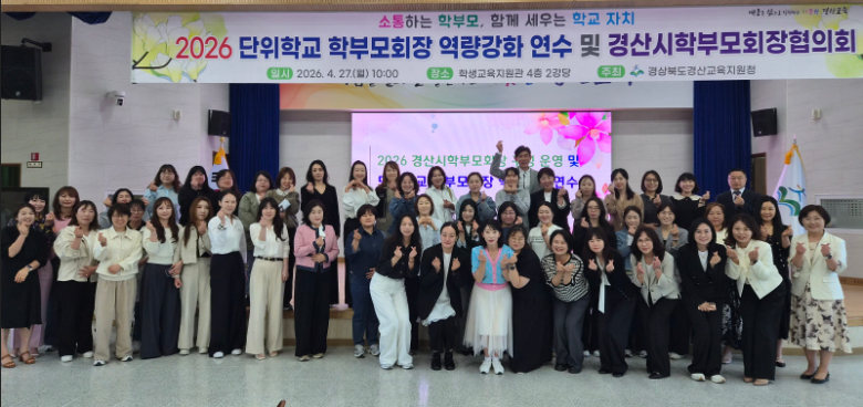경산교육지원청은 학부모의 교육활동 참여를 지원하고 학부모회의 자치활동 활성화를 돕기 위해 지난 27일 경산교육지원청 학생교육지원관에서 ‘2026년 경산시학부모회장협의회 구성 및 단위학교 학부모회장 역량강화 연수’를 개최했다. 이번 행사에는 지역 초·중·고·특수학교 학부모회장 55명이 참석했다. 행사는 1부 역량강화 연수와 2부 협의회 구성 및 총회로 나눠 진행됐으며 연수에서는 전 포항 양학중학교 김희화 교장이 ‘미래교육의 이해와 단위학교 학부모회장 리더의 비전’을 주제로 강의를 진행했다. 이어진 총회에서는 공식 명칭을 ‘경산시학부모회장협의회’로 확정하고 투표를 통해 2026년도 협의회를 이끌어갈 회장과 임원진을 새롭게 선출했다. 협의회는 선출된 임원진을 중심으로 교육감·교육장 간담회 및 소통 채널 운영, 학교별 현안 모니터링, 교육 참여 우수사례 공유 등 2026년도 학부모회의 주요 활동을 본격적으로 추진하기로 했다.