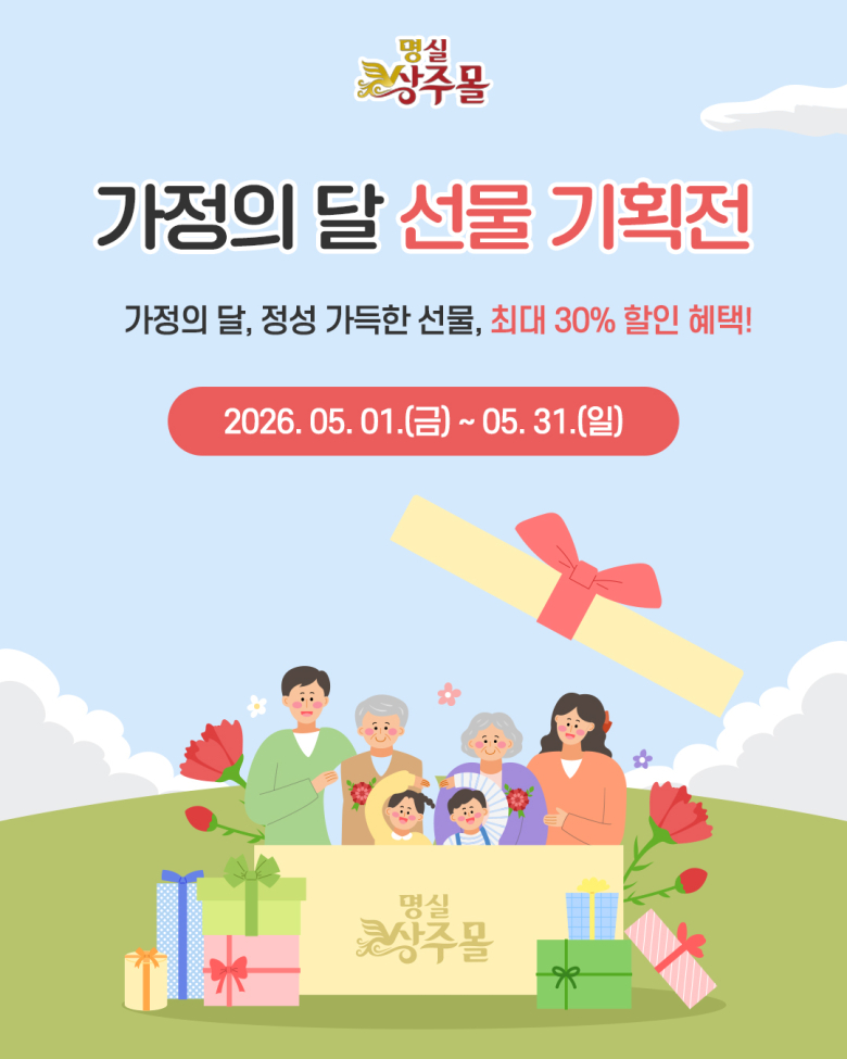 이를 통해 상시적인 할인 혜택을 강화하고, 단골 고객 유지 및 재구매 활성화를 유도할 계획이다. 이번 기획전은 명실상주몰뿐 아니라 네이버스토어 ‘나란히가게’등 제휴 쇼핑몰에서도 함께 운영되어 상주 농특산물의 온라인 판매채널을 확대하고 전국 소비자와의 접점을 넓히는 계기가 될 것으로 기대된다. 상주시 관계자는 “가정의 달을 맏아 감사의 마음을 전할 좋은 기회를 마련했다”며 “건강하고 품질 좋은 상조 농특산물을 합리적인 가격에 만나보시고, 따듯한 마음을 전하시길 바란다”고 했다.